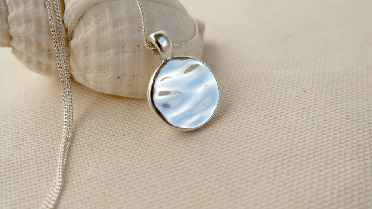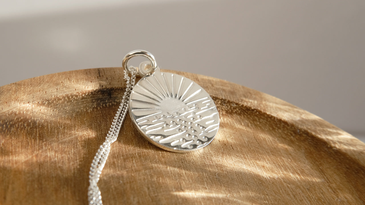 Our best-selling Happy Place Ocean Necklace is now available in recycled 925 Sterling Silver.
