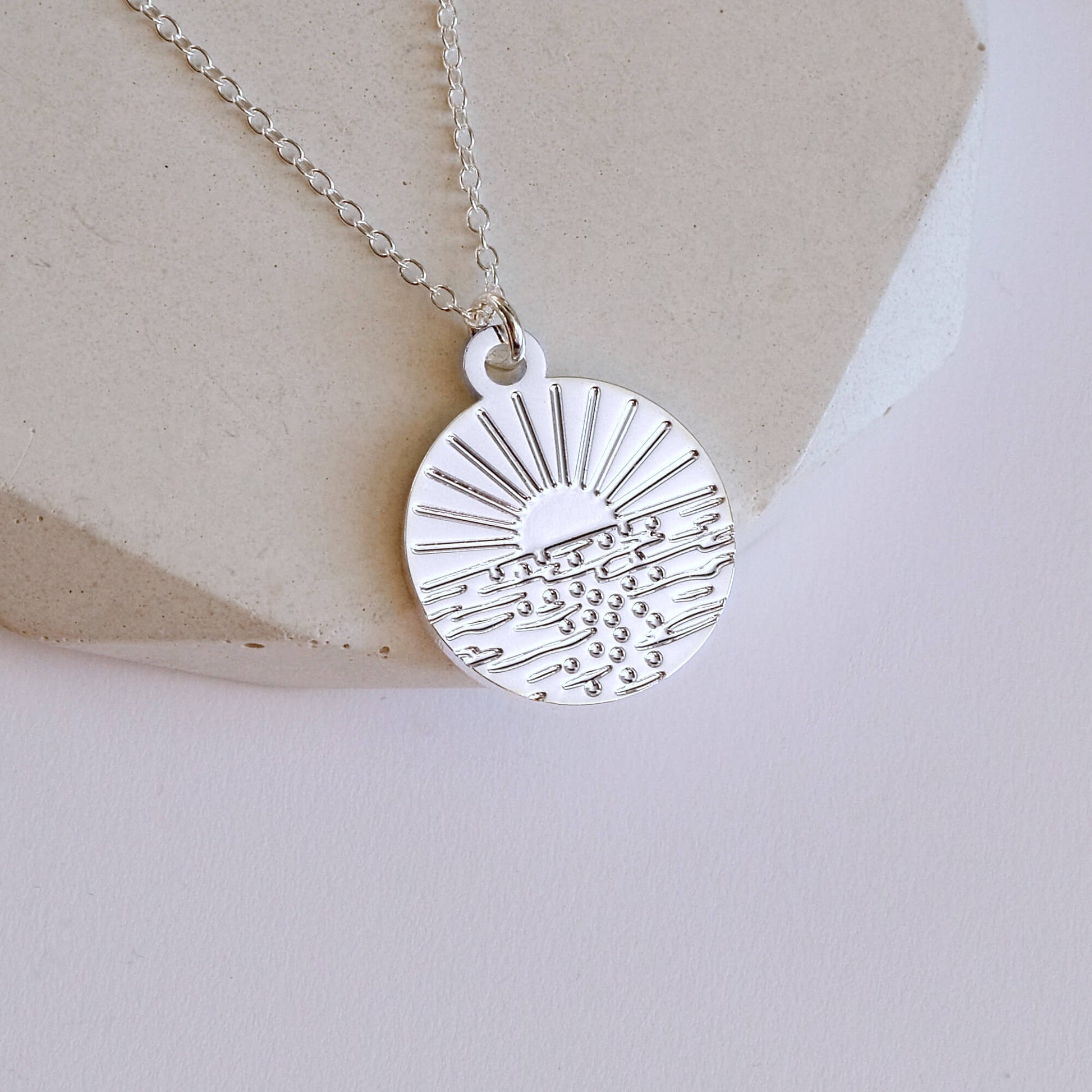 Sterling Silver Happy Place Ocean Necklace reminding you of that feeling of peace and happiness when looking out over a sparkling still ocean.