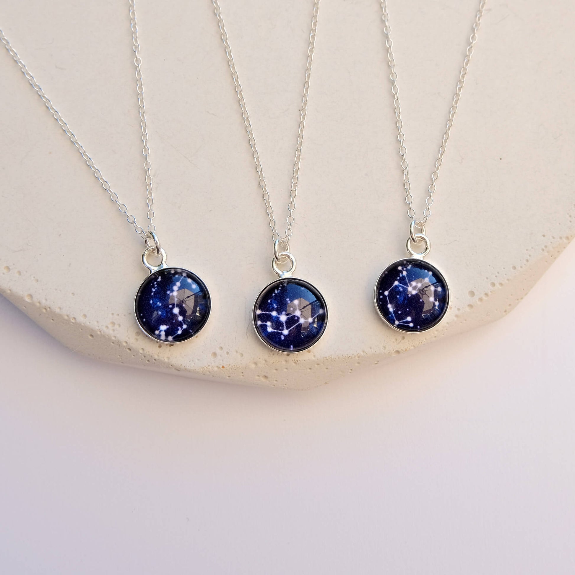 Personalised Sterling Silver Star Sign Necklace featuring your choice of zodiac star sign or constellation.