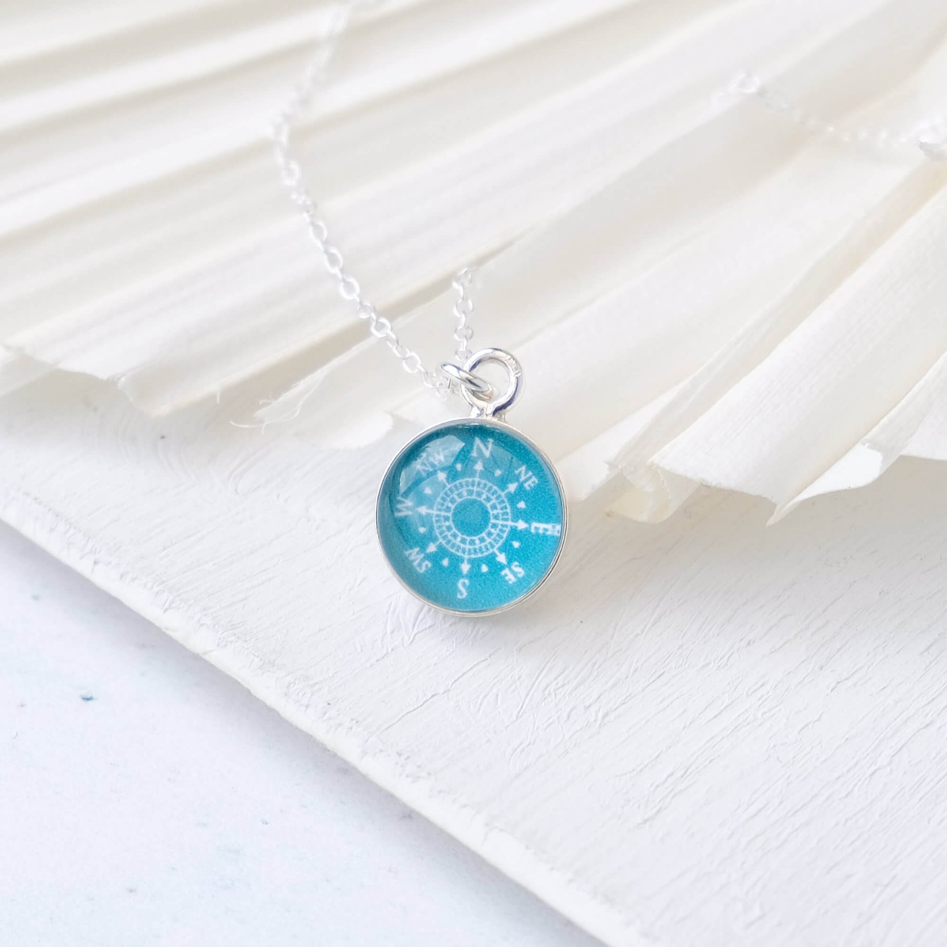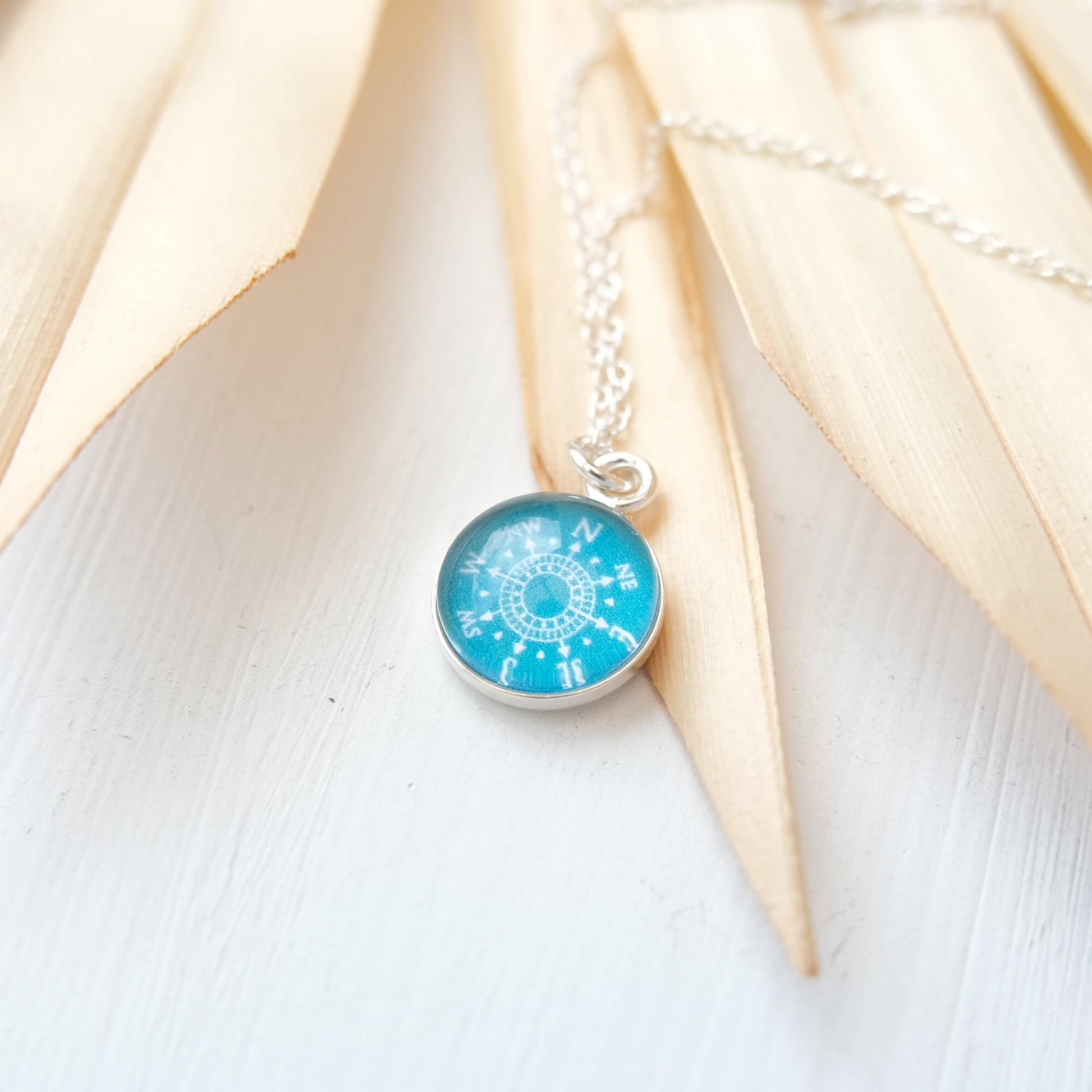 Sterling Silver Teal Green Compass Necklace