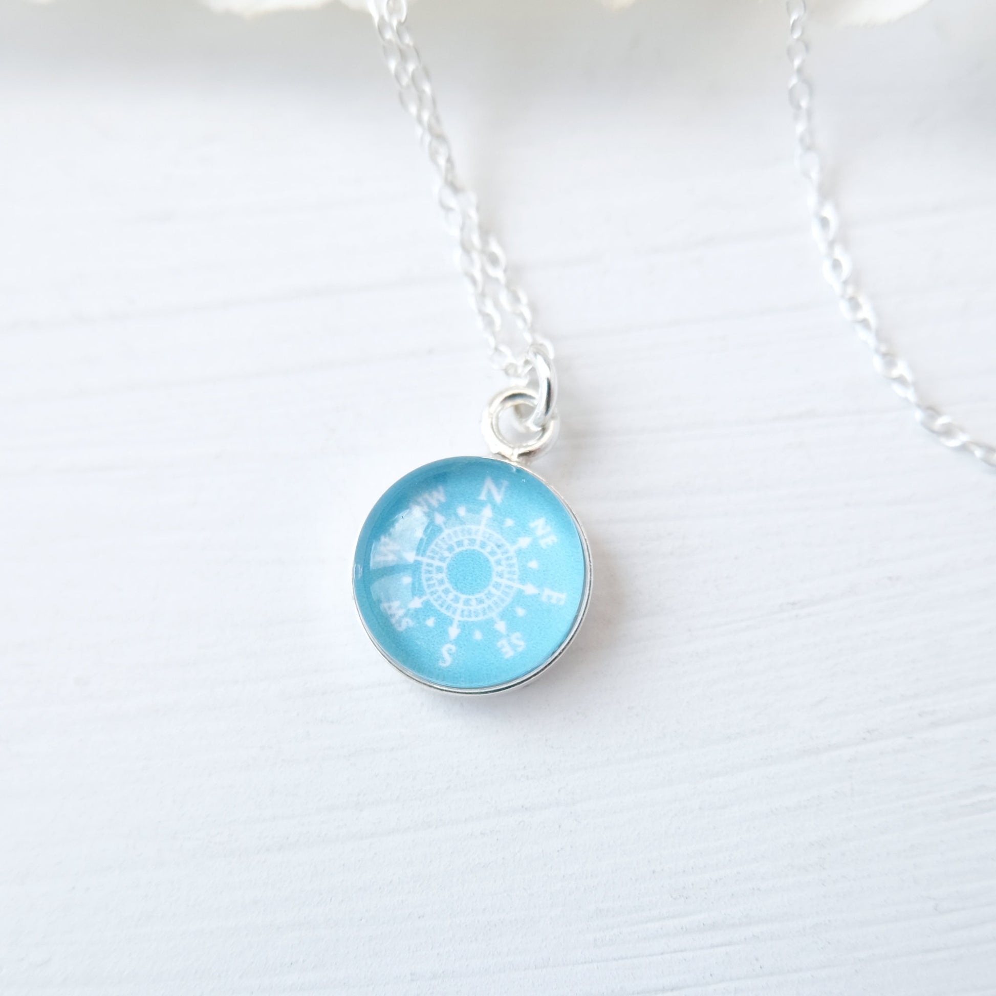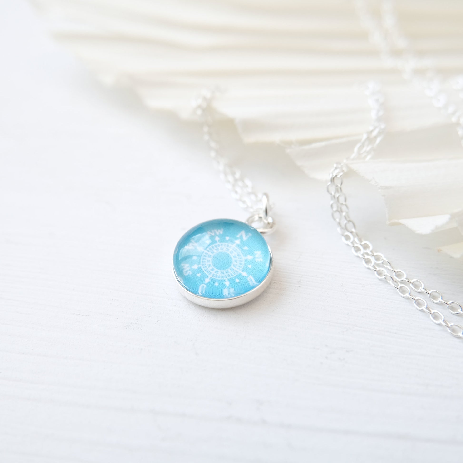 Turquoise blue Sterling Silver Compass Necklace, perfect for those who love to ask themselves, "Where to next?".